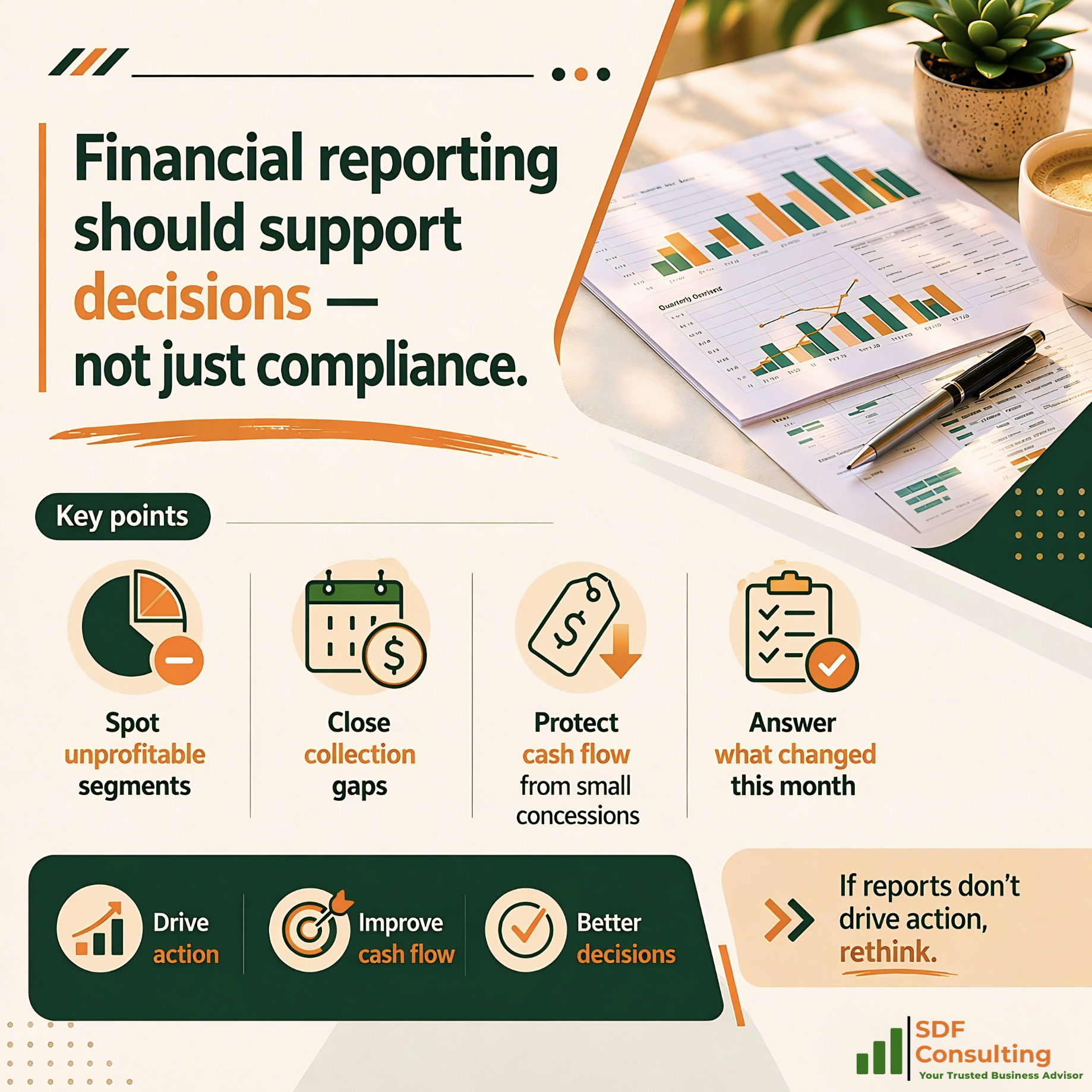 If your reports don’t clearly influence pricing, hiring, investment, or cash‑flow decisions, they aren’t doing their full job.